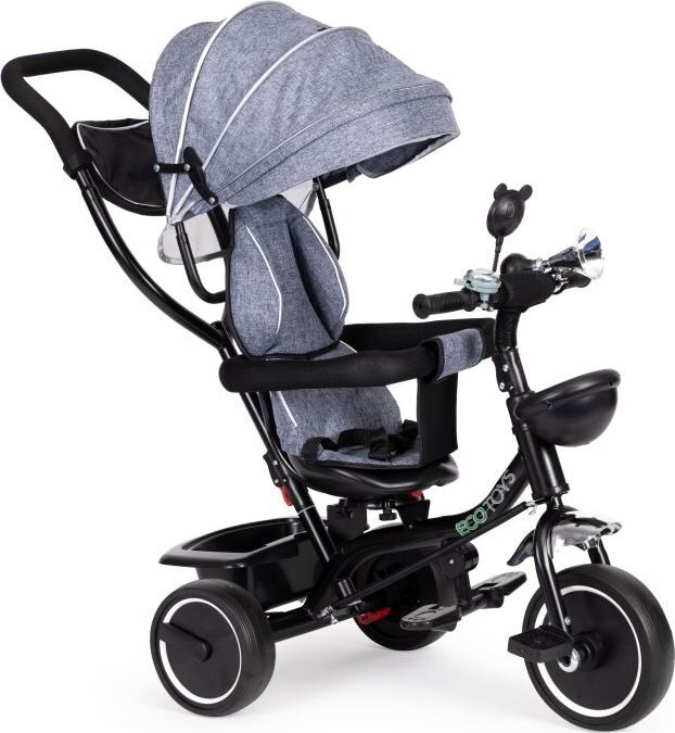 ECOTOYS Tříkolka se střechou a vodící tyčí šedá