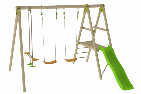 „TUTTI – celoDŘEVĚNÉ sestavy 230 cm vysoké, materiál harmonizuje se okolní zahradou.Nasta­vitelná výška plastového sedátka, vyrobené vstřikovací metodou Houpací kluzák s plastovými sedáky a trnoží-držák na nohy, skluzavka s nástupní plošinou Houpačka zavěšena na pevném závěsném oku. Spoje jsou... przeczytaj całość