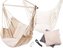 Brazilské závěsné houpací křeslo s dřevěnou tyčí a polštáři, béžová