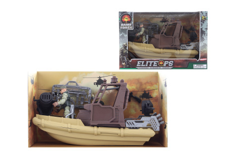 Sada válečné lodi s vojákem. Materiál plast. Baleno v krabici. Rozměry balení cca 27x18x11,5 cm. Velikost lodi 24 cm, velikost vojáka cca 8 cm. Věk 3+ przeczytaj całość