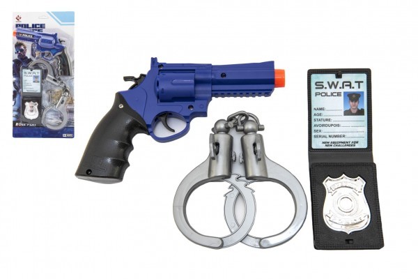 Policejní sada plast pistole klapací 18x13cm + pouta + odznak na kartě 18x38x4cm