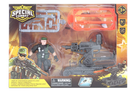 Zestaw wojskowy zawiera żołnierza, ruchomy karabin maszynowy i inne bronie. Karabin maszynowy może strzelać pomarańczowymi rakietami. Wymiary opakowania ok. 24 x 17 x 5 cm. Wiek 3+ przeczytaj całość