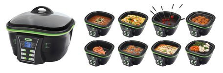 fondue, pomalé vaření, dušení, smažení, vaření, fritování, grilování, zapékání, vaření v páře, objem nádoby 5 l, nast. teploty 50-240 °C, vyjímatelná nádoba, příslušenství: fondue set 6 vidliček, mřížka na vaření v páře, mřížka na grilování, fritovací koš, 1500 W przeczytaj całość