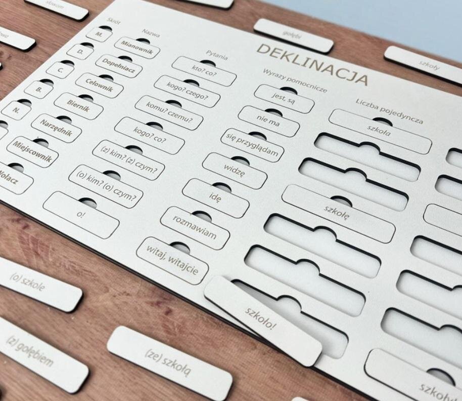 Przypadki tablicaDeklinacja, czyli odmiana przez przypadki może sprawić najmłodszym nie lada wyzwanie.Z pomocą przychodzi nasza edukacyjna tablica do nauki odmiany przez przypadki!Zawiera siedem nazw przypadków wraz z pytaniami na jakie odpowiadają. Ponadto posiada wyrazy pomocnicze, które...