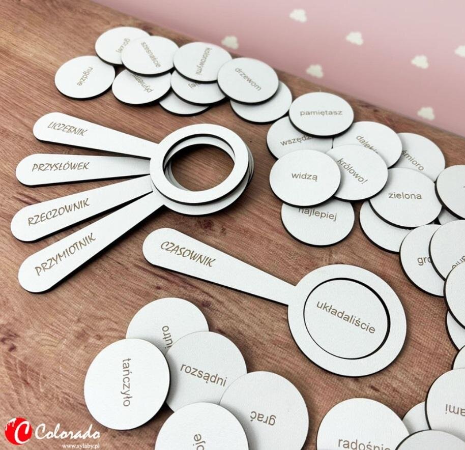 Dzięki łamigłówce dziecko w formie zabawy uczy się rzeczowników, czasowników, liczebników, przymiotników i przysłówków.Zestaw zawiera 54 słowa + 5 lup z nazwami części mowy.Produkt idealnie nada się do zabawy w domu jak i pracy grupowej na lekcji języka polskiego.Przeznaczenie: do nauki i zabawy... przeczytaj całość