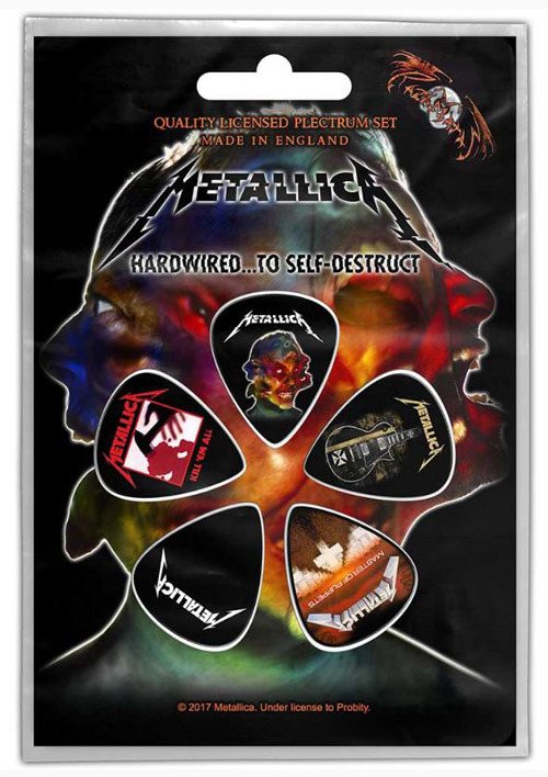 Set 5ti kusů trsátek s logem a grafikou skupiny Metallica.