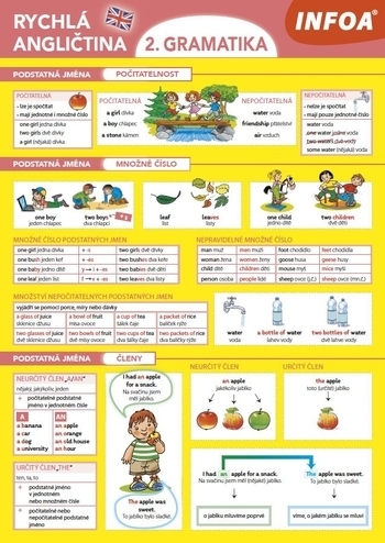 Tato publikace obsahuje to nejdůležitější z anglické gramatiky zpracované do přehledných tabulek, které jsou doplněny názornými ilustracemi. Jsou zde zpracovány tyto gramatické okruhy: množné číslo podstatných jmen, členy, zájmena, číslovky, slovesa, slovesné časy, předložky a spojky. Gramatické jevy jsou vždy použity ve větách, což umožňuje snadnější pochopení a zapamatování příslušného gramatického jevu.