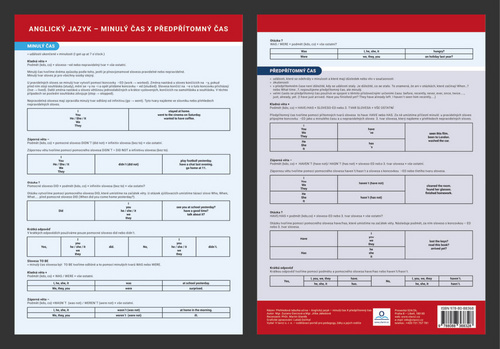 Anglický jazyk - Minulý čas X předpřítomný čas - Přehledová tabulka učiva (czeski)