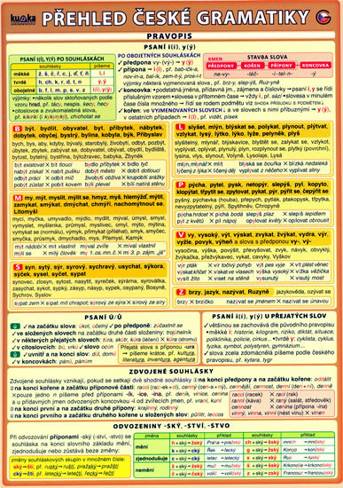 Przegląd gramatyki czeskiej na jednej stronie podzielony na tabele. Odpowiedni dla uczniów szkoły podstawowej i średniej. Zawiera rozdział o ortografii, fleksji i składni. przeczytaj całość