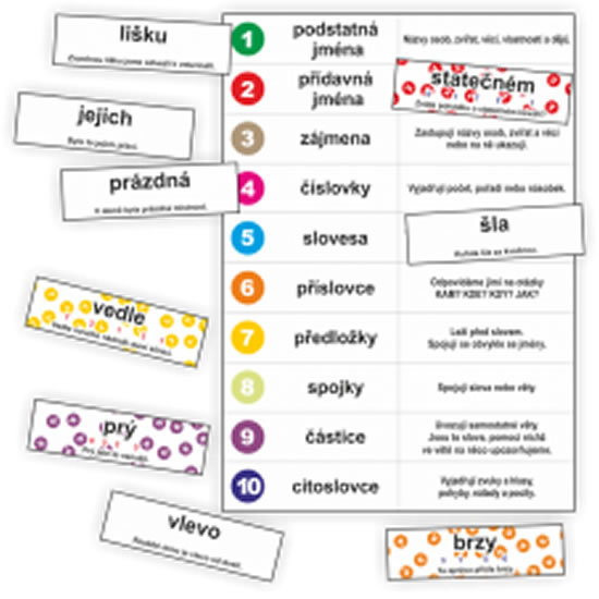 580 kartek/kart do ćwiczenia części mowy. Na stronie kontrolnej określona jest część mowy wszystkich wyrazów w zdaniu. W zestawie znajduje się również podkładka (1 sztuka) - Części mowy - podkładka. przeczytaj całość