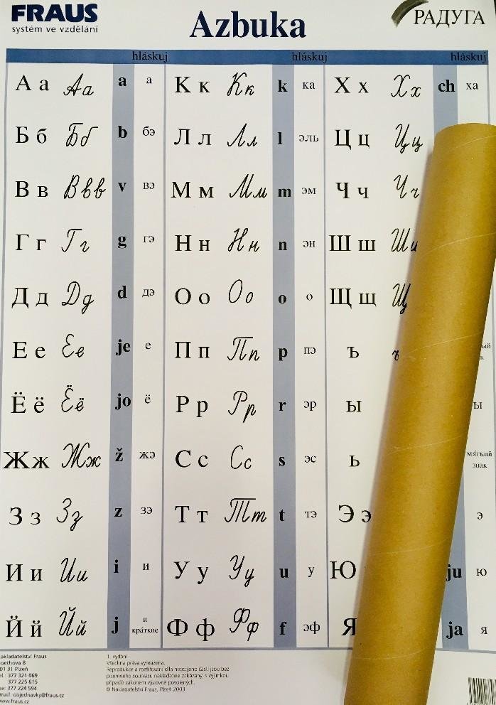 Doplňkový materiál pro výuku ruského jazyka. Slouží k naučení a procvičování ruské abecedy - azbuky. Vhodné pro výzdobu učebny nebo třídy. przeczytaj całość