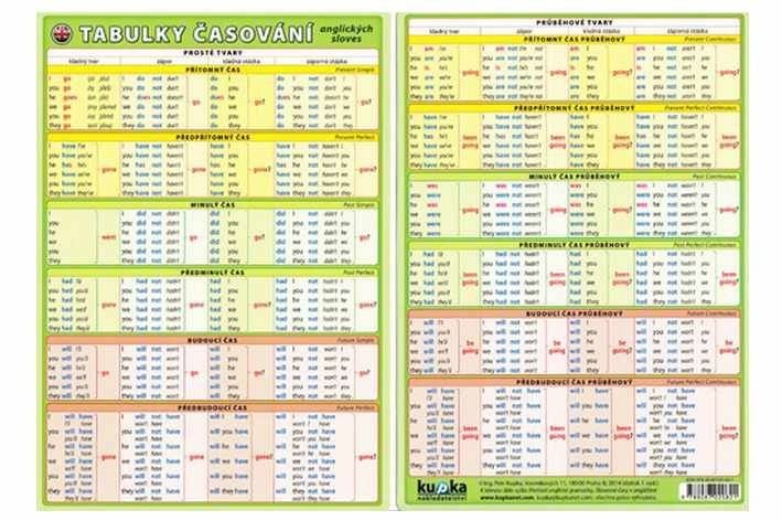 Przejrzyste tabele wszystkich dwunastu angielskich czasów - forma twierdząca, przeczenie, pytanie twierdzące, pytanie przeczące. Odmieniony czasownik go (iść). Kolorowe oznaczenia końcówek i nieregularności. przeczytaj całość