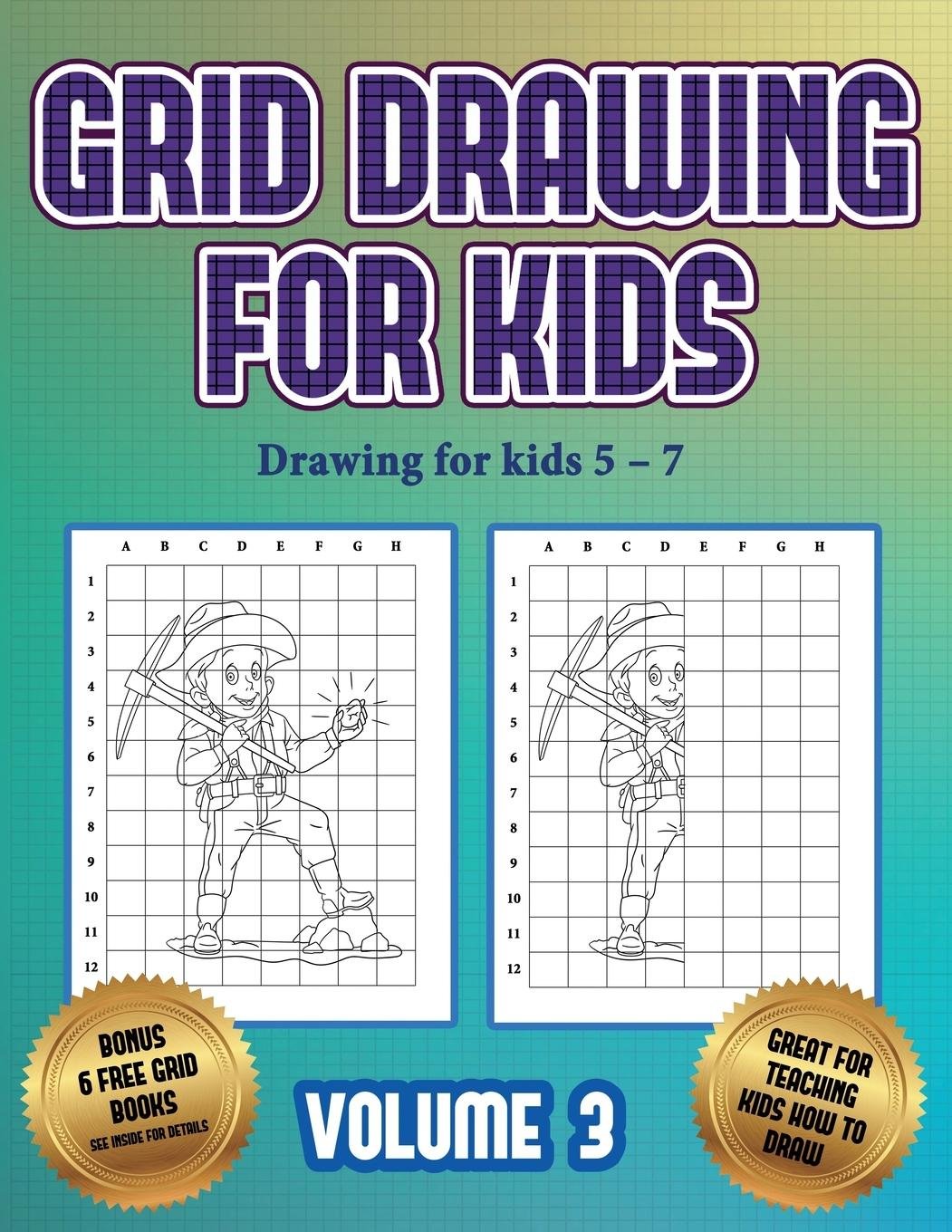Drawing for kids 5 - 7 (Grid drawing for kids - Volume 3): This book teaches kids how to draw using grids (angielski)