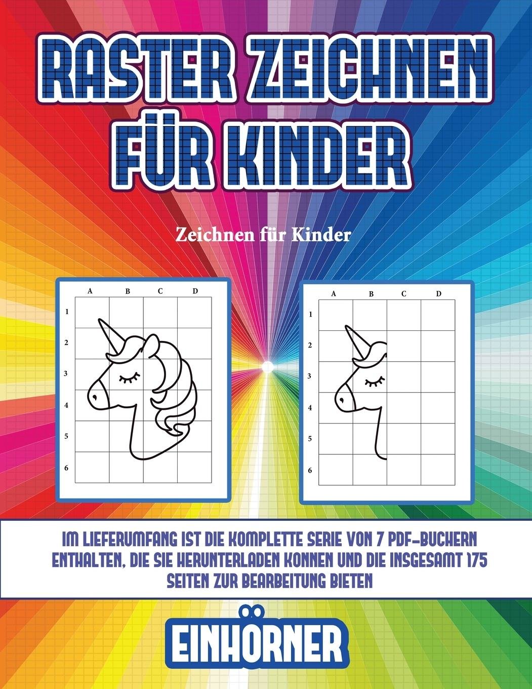 Zeichnen für Kinder (Raster zeichnen für Kinder - Einhörner): Dieses Buch bringt Kindern bei, wie man Comic-Tiere mit Hilfe von (niemiecki)