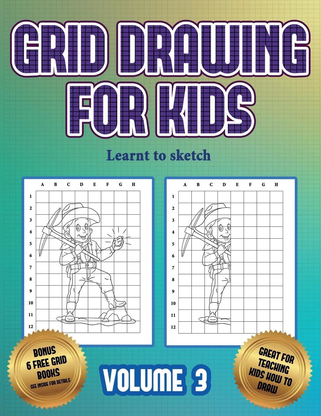 Learnt to sketch (Grid drawing for kids - Volume 3): This book teaches kids how to draw using grids (angielski)