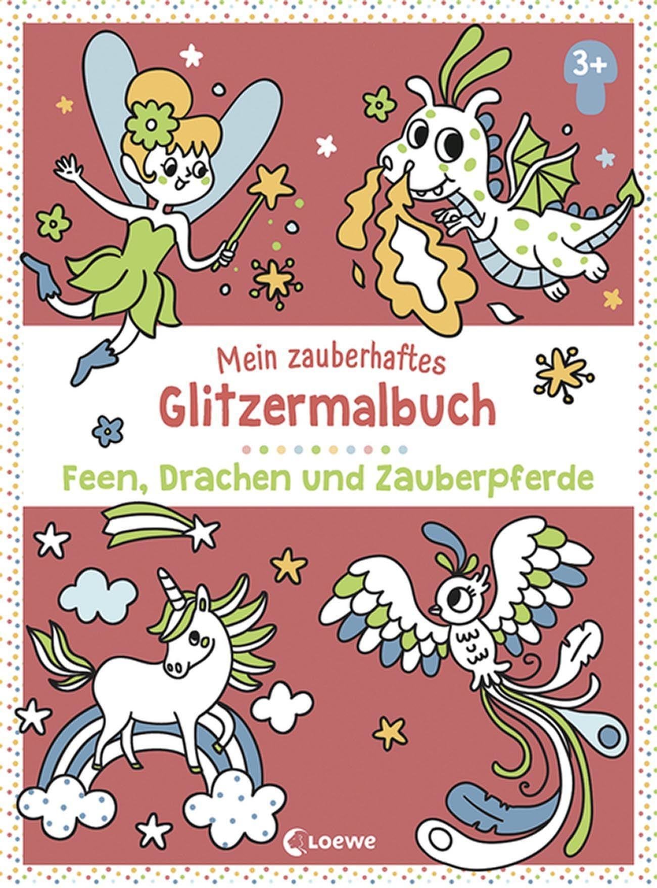 Mein zauberhaftes Glitzermalbuch - Feen, Drachen und Zauberpferde (niemiecki)