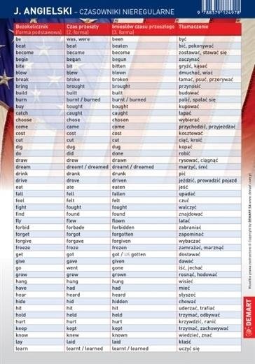 Ściągawka - Język ang. - Czasowniki nieregularne