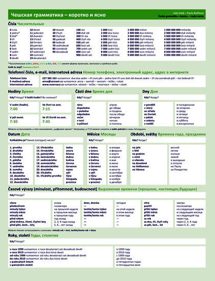 „Czeska gramatyka w pigułce” to czterostronicowy poradnik o nieco większym formacie niż A4, drukowany na dwustronnie laminowanym kredowym papierze. Jego zrewidowana, rozszerzona wersja z 2010 roku jest przeznaczona dla początkujących i średnio zaawansowanych uczniów języka czeskiego jako obcego, jednak do okazjonalnego zajrzenia mogą go też używać zaawansowani użytkownicy. Przedstawia prosty przegląd podstawowych zjawisk gramatycznych i leksykalnych ważnych dla skutecznej codziennej komunikacji, zawsze pod ręką. Nie kopiuje mechanicznie tradycyjnych zasad gramatycznych, lecz dostosowuje wykład do percepcji i potrzeb obcojęzycznych użytkowników (wykorzystuje np. kolorowe kodowanie do oznaczania rodzaju gramatycznego, uproszczone schematy ilustrujące wyrażanie kierunku i lokalizacji itd.).
