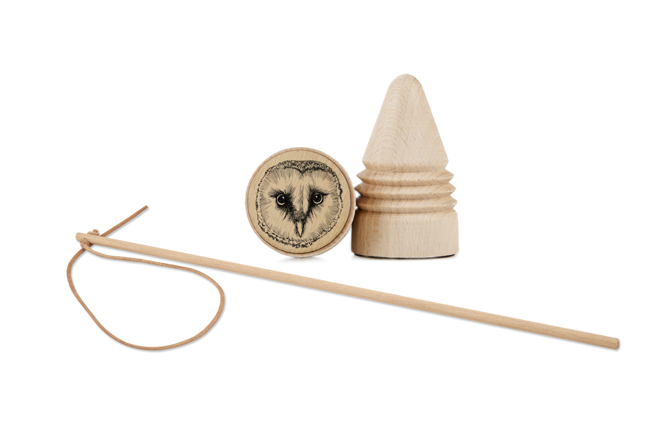Lesní svět Dřevěná káča RETRO s bičíkem - Sova pálená pérovka