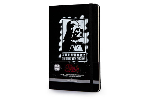 Limitowana Edycja Kalendarza Moleskine 18-miesięcznego z bohaterami Gwiezdnych Wojen. Obowiązuje od lipca 2014 do końca grudnia 2015 roku. Układ: tydzień na lewej stronie, a prawa poświęcona na notatki. przeczytaj całość