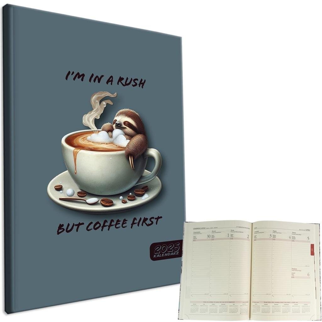 Kalendarz 2025 A4 tygodniowy Leniwiec Kawa