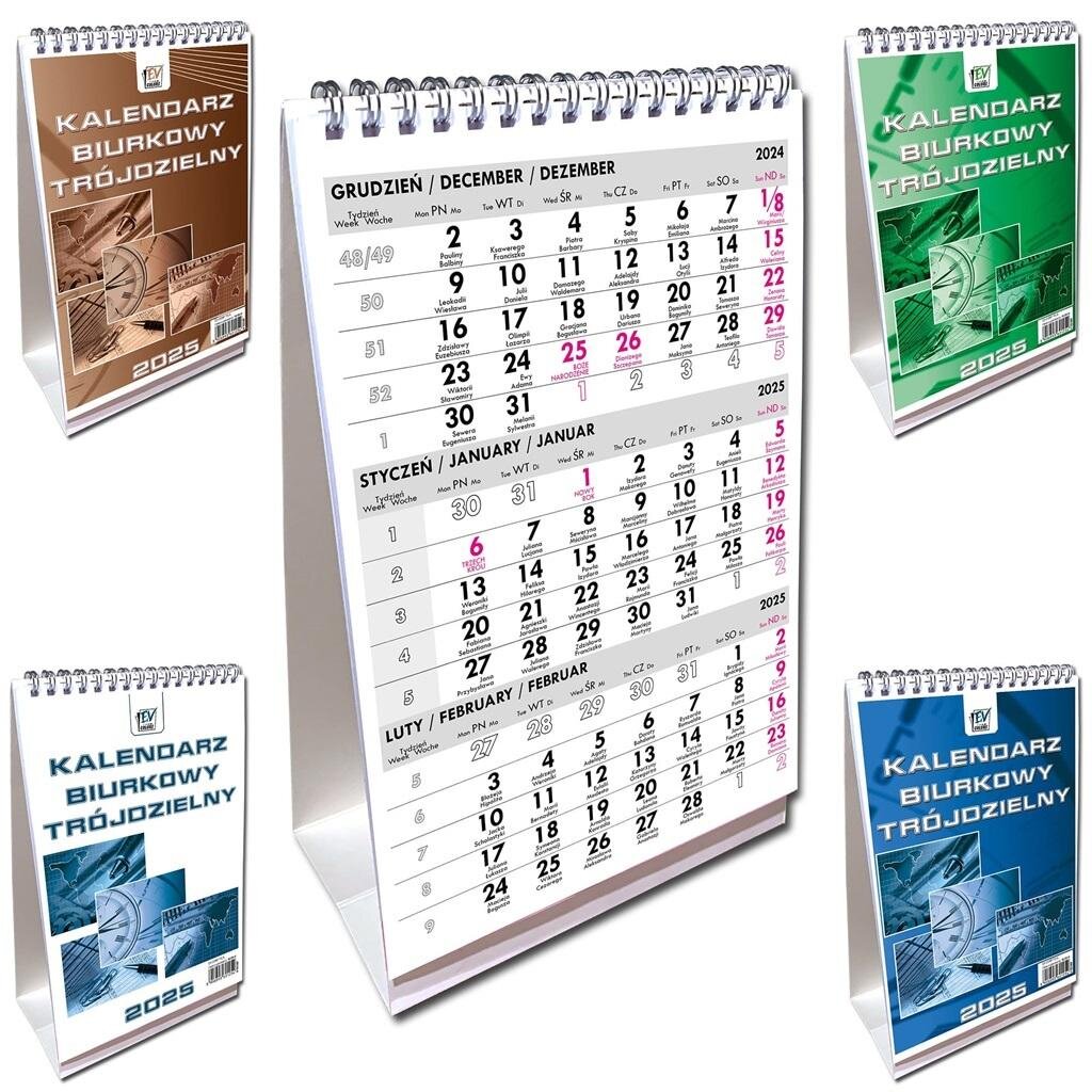 Kalendarz 2025 A5 biurkowy trójdzielny pion mix
