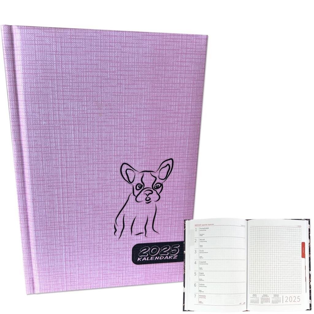 Kalendarz 2025 A5 tygodniowy Buldog Róż