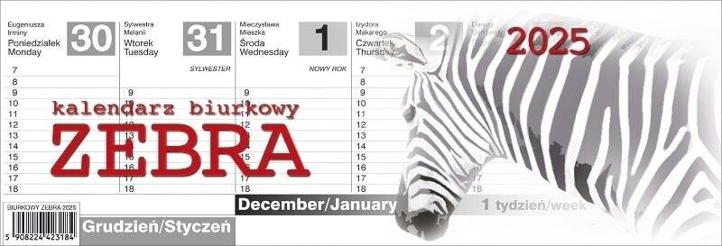 Kalendarz 2025 biurkowy Zebra