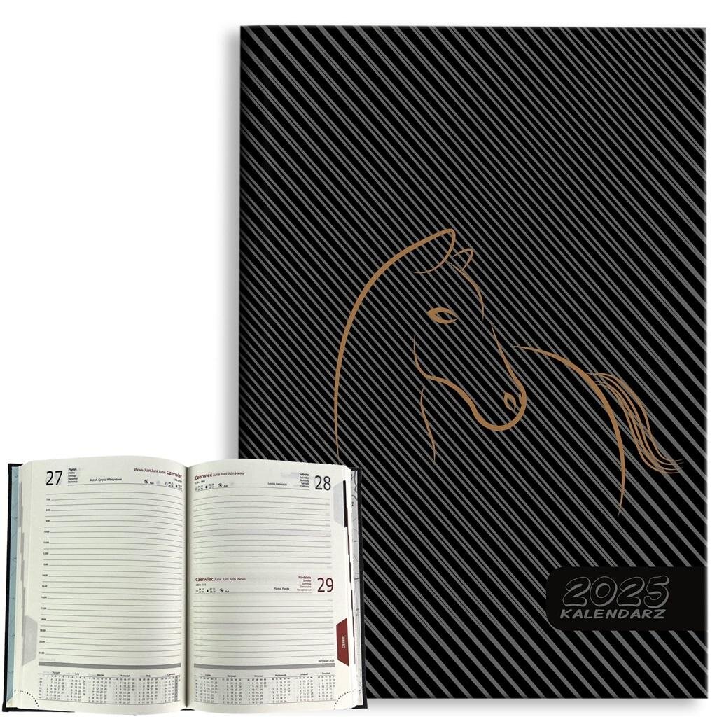 Kalendarz 2025 A5 dzienny Koń czarny w pasy