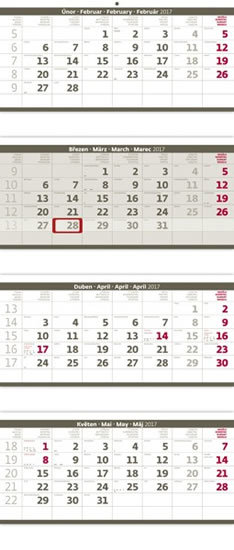 Kalendář nástěnný 2017 - 4měsíční/šedý skládaný s jmenným kalendáriem (czeski)