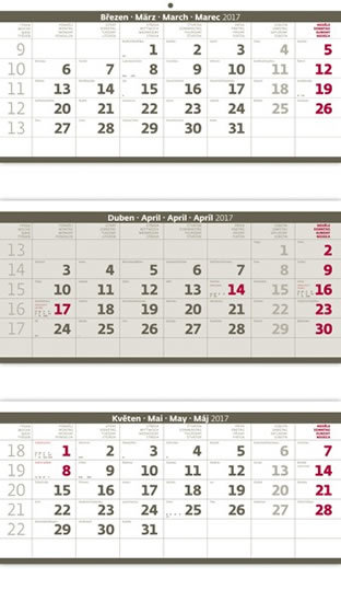 Kalendář nástěnný 2017 - 3měsíční/šedý skládaný s jmenným kalendáriem (czeski)