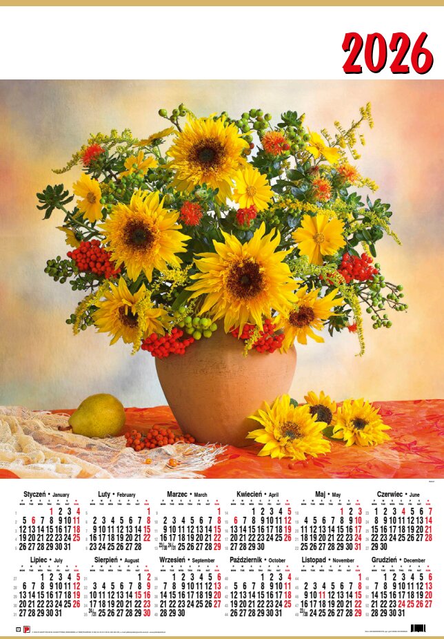Kalendarz ścienny jednoplanszowy B1 nr 3 Kwiaty 2026 darmowa wysyłka od 30szt (poniżej tej ilości wysyłka na koszt klienta) dopuszczalne mieszanie wzorów