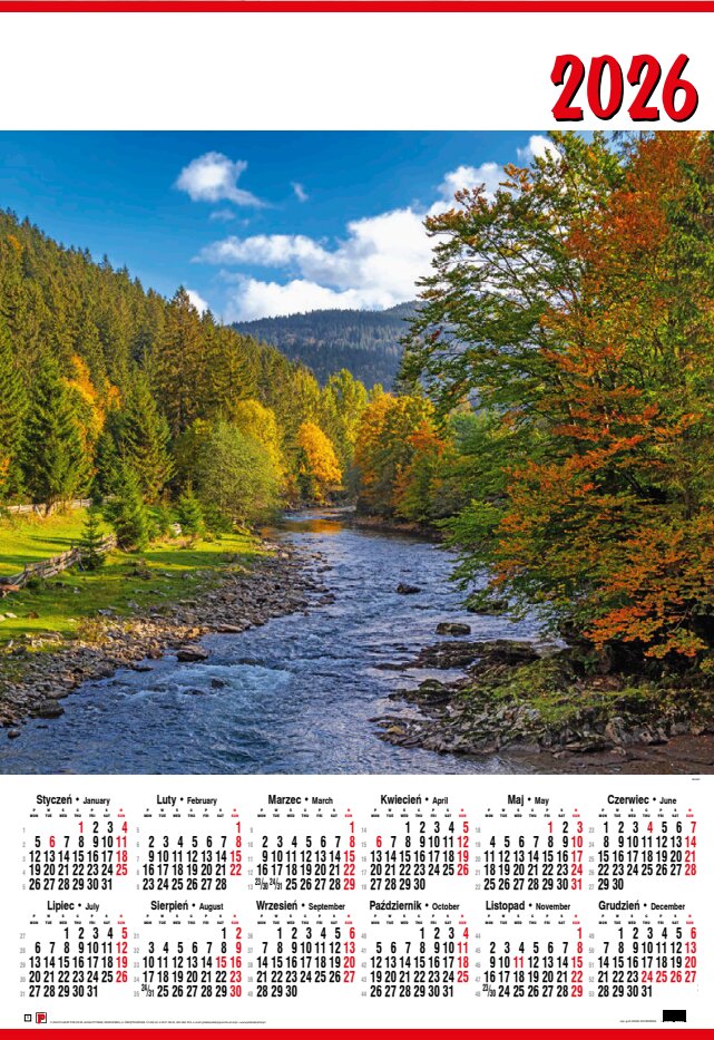 Kalendarz ścienny jednoplanszowy B1 nr 5 Jesień 2026 darmowa wysyłka od 30szt (poniżej tej ilości wysyłka na koszt klienta) dopuszczalne mieszanie wzorów