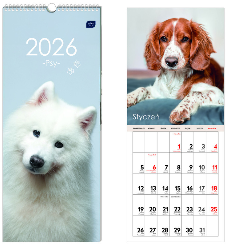 Kalendarz paskowy 17x41cm Psy 2026, Interdruk