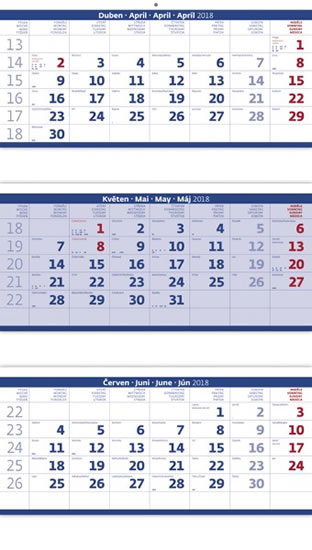 Kalendář nástěnný 2018 - 3měsíční/modrý skládaný s jmenným kalendáriem (czeski)