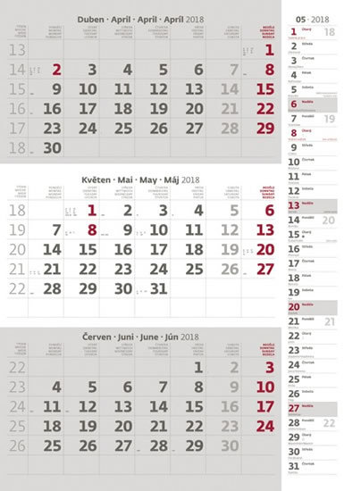 Kalendář nástěnný 2018 - 3měsíční/šedý s poznámkami a jmenným kalendáriem (czeski)