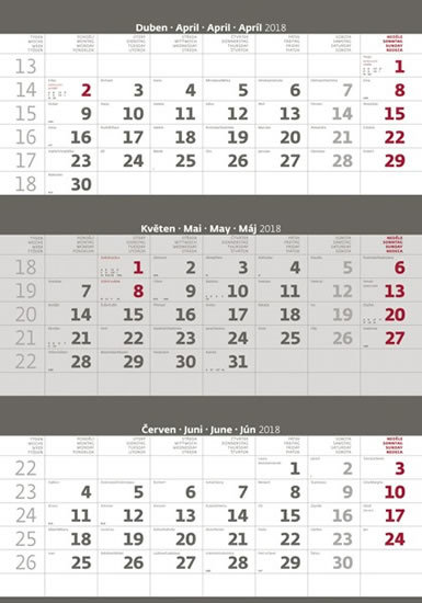 Kalendář nástěnný 2018 - 3měsíční/šedý s jmenným kalendáriem (czeski)