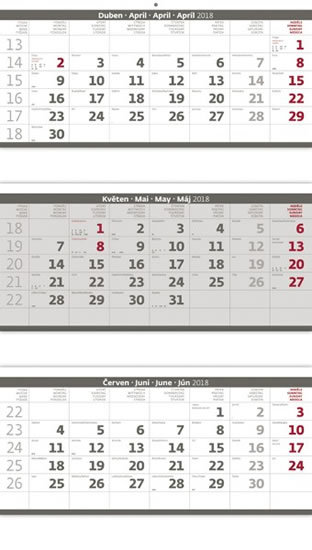Kalendář nástěnný 2018 - 3měsíční/šedý skládaný s jmenným kalendáriem (czeski)