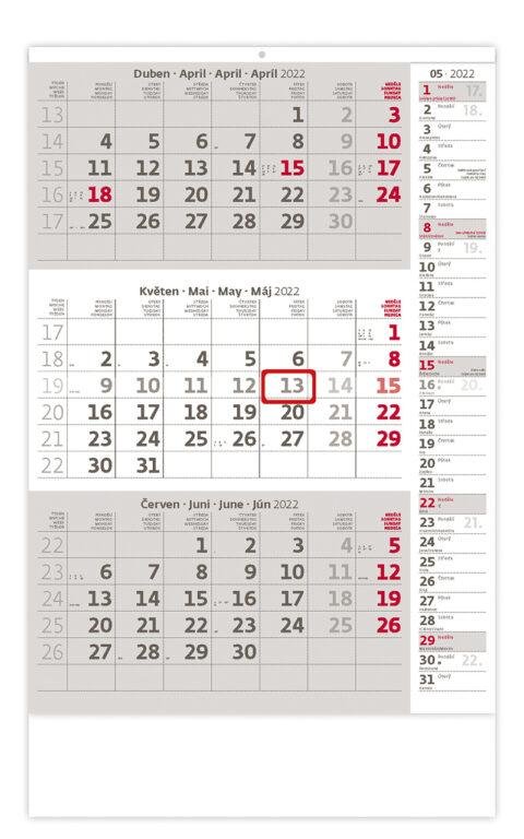 Kalendář nástěnný 2022 - Tříměsíční šedý s poznámkami (czeski)