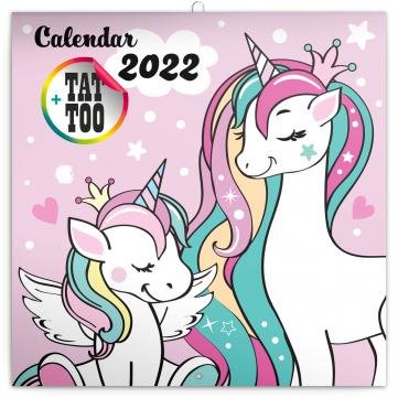 Poznámkový kalendář v pastelových barvách s motivem šťastných jednorožců, kteří motivují svým pozitivním přístupem k životu, na stránkách poznámkového kalendáře. Uvnitř najdete přehledné kalendárium od září 2021 do prosince 2022 v šesti jazycích, fáze měsíce, důležité svátky a prostor pro poznámky na každý den. Kalendář obsahuje arch smývatelných tetovaček, se kterými si užijete spoustu legrace.