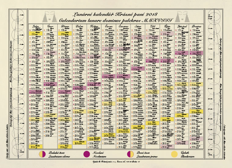 Jednolistý Lunární kalendář Krásné paní 2018 (czeski)