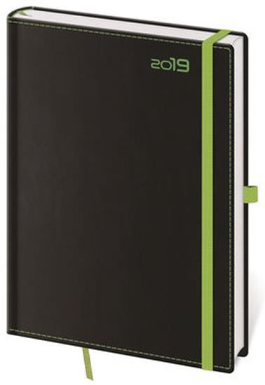 Diář 2019 - Black Green/týdenní A5/s poutkem na propisku (czeski)