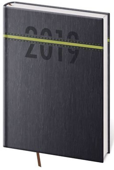 Diář 2019 - Stripes/denní A5/černo/zelená (czeski)