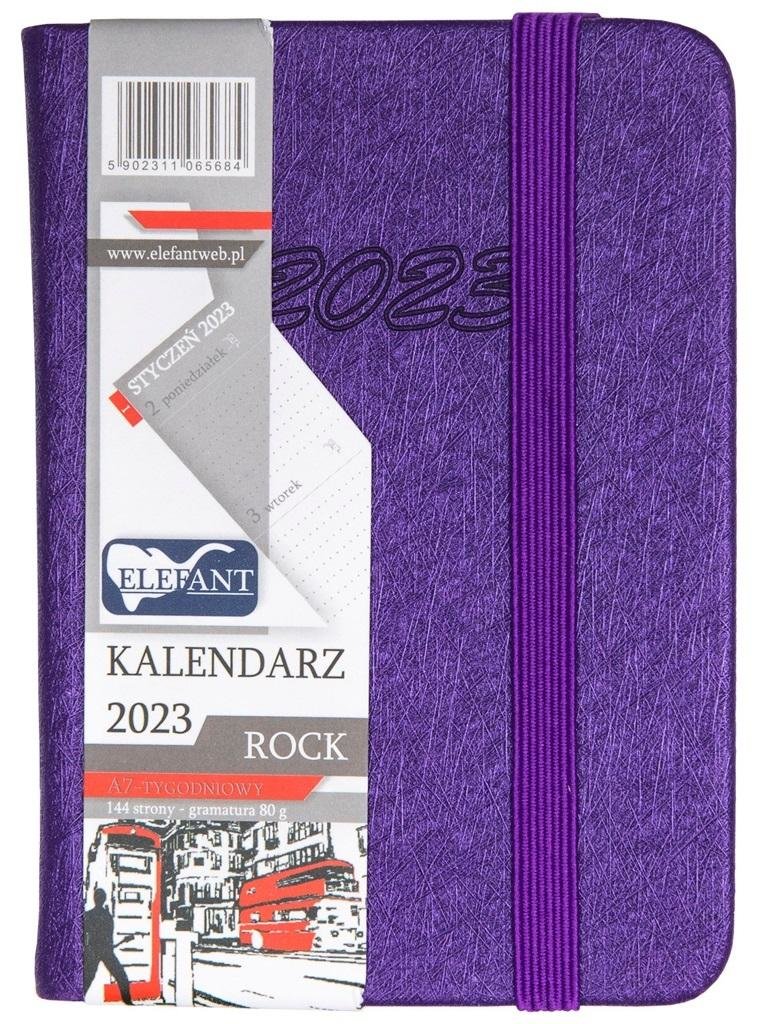 Kalendarz 2023 A7 tyg. Rock fioletowy ELEFANT