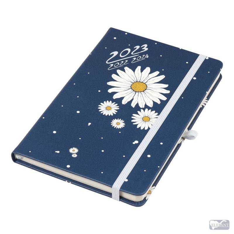 Kalendarz 2023 A5 tyg. Hip hop stokrotka niebieskaFormat A5 - tygodniowy, 18 miesięcy + noteswymiar: 200x130 mmpapier: delikatne chamois 80 g/m2ilość stron: 194+ zaokrąglone narożniki opraw i stron+ gumka spinająca kalendarz+ elastyczny uchwyt na długopis+ tasiemka w kolorze okładki+ koperta na...