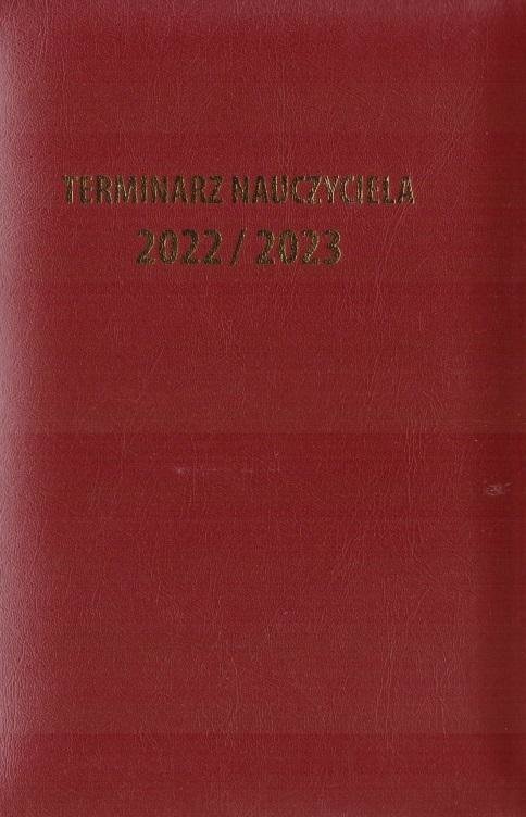 OKŁADKA - miękka, skóropodobna z gąbką iobszyciem, złocenie "Terminarz Nauczyciela 2022/2023"BLOK - 140x205mm, 360 str.,papier biały 64g/m2, druk 2 kolory, tasiemka, kolorowa mapaPolski oraz Europy na wyklejkach, blok kalendarza szyty nićmi, kapitałka,perforowane narożnikiKolory: granat,zieleń,... przeczytaj całość