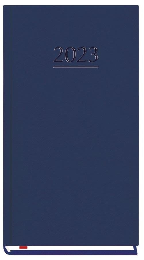 Terminarz 2023 Kieszonkowy Granatowyformat:90x165 mmrodzaj papieru:offset 70g/m2 białyukład kalendarium:1 tydzień - 2 stronyilość stron:144druk:2 koloryOprawa: skóropodobna Vivella, jedna tasiemka. przeczytaj całość