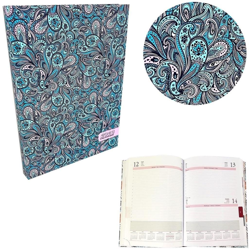 Kalendarz 2023 A4 dzienny soft touch paisey turkus