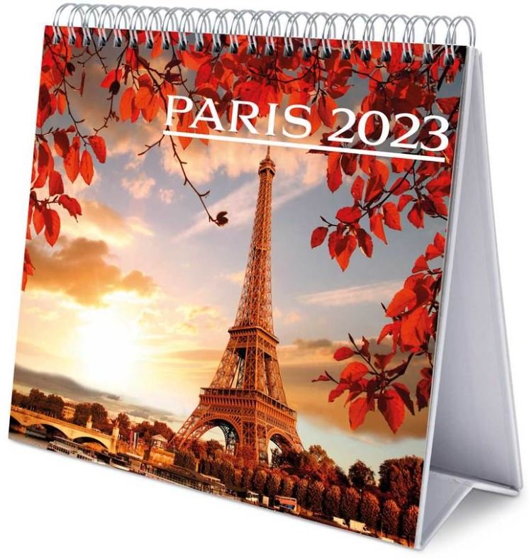 Stolní kalendář na rok 2023 s fotografiemi Paříže.Zboží je legálně licencováno a prodáváno se souhlasem vlastníků licenčních práv. Kalendář obsahuje výhradně schválené autorizované fotografie.Formát kalendáře: 17 x 20 cm.Drátěná kroužková vazba.Obsahuje dva formáty měsíčního zobrazení dnů.Jazyky:...