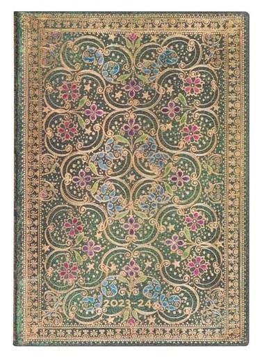 Kalendarz 18-miesięczny (lipiec 2023-grudzień 2024) ekskluzywnej marki Paperblanks. Format Midi typu Horizontal - cały tydzień rozplanowany na 2 stronach. Elastyczna oprawa i grzbiet. Kalendarium w języku angielskim. W środku miejsce na notatki, roczny planer, oznaczone wybrane święta...